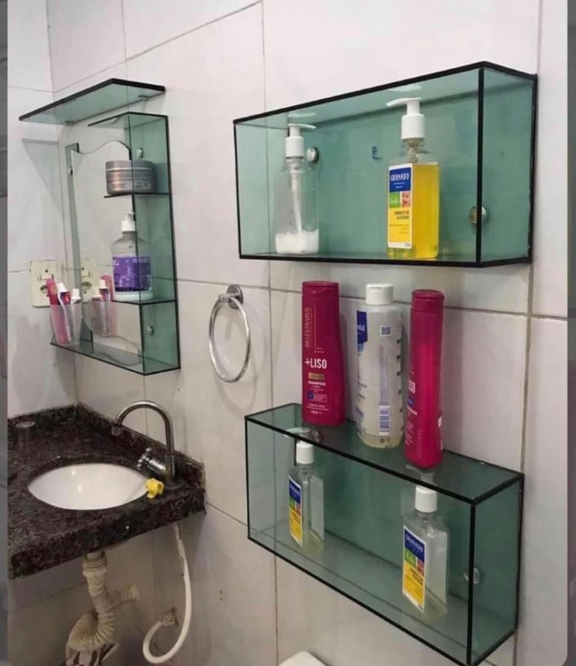 Descrição: Ideais para organizar e exibir produtos de beleza, toalhas de rosto coloridas ou pequenos vasos, criando pontos de interesse visual e mantendo a ordem.